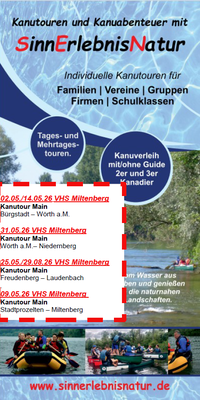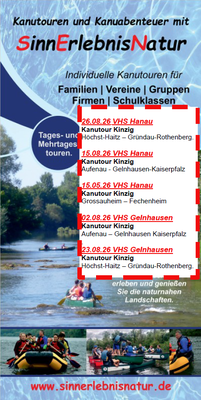 Tagestouren ca. 5-8 Std. inkl. Pausen: 100,- pro Boot (3er Kanadier) plus Tourguide 130,-